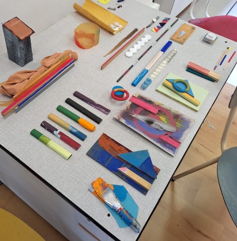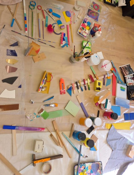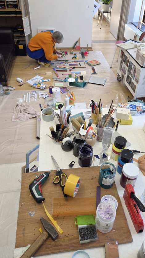 Het spel en het proces nemen daarbij de bovenhand. Materialen en grondstoffen uit beide ateliers worden samengebracht tot halfproducten, die binnen een groeiend speelveld hun weg vinden in heteromorfe muurassemblages.