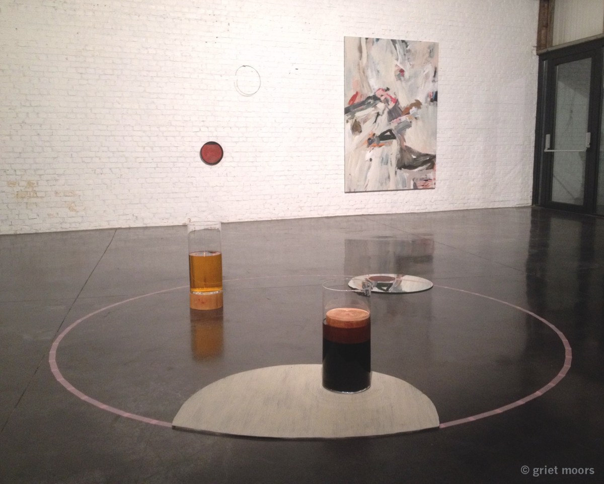 Published 28/03/2015 at 2000 × 1603 in PROJECTS ← Previous Next → Between here and there (beat break) – acrylics and lacquer on canvas, steel, glass, wood, liquids, rubber, mirror, tape – variable dimensions – 2015